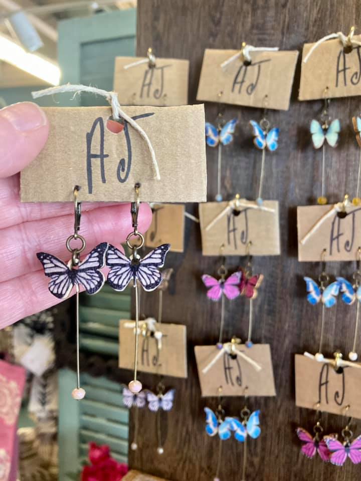 Gypsy Palooza and Artsy June are owned by entrepreneur and artisan Katy Newberry. Katy designs jewelry as well as upcycled clothing with cool funky designs. Katy also spotlights other local artisans at both of her shops. "Earring Gypsy" Alisa Downey is on display with lots of fun seasonal earrings. Local photographer Phillip Barrett has his Roanoke themed prints available for purchase. Cindy Owens has wax melts with delicious fragrances available to buy and Diane Miller has designed magnets, necklaces, and signs.